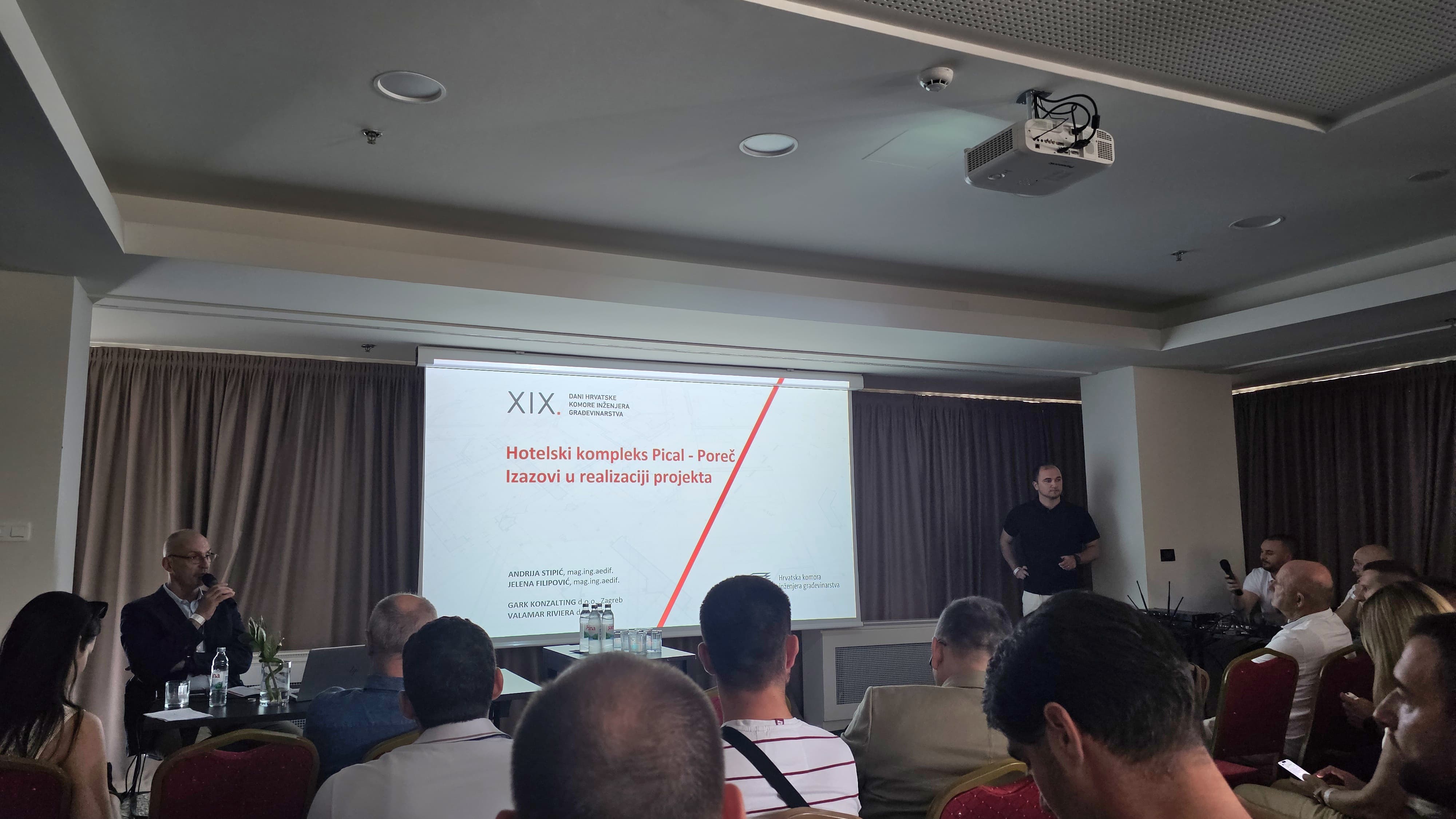 Our engineer Andrija Stipić and the investor engineer from Valamar Jelena Filipović held a lecture on the topic "The Pical Hotel Reconstruction Project, Poreč - Organizational Challenges of Realizing the Largest Investment in Tourism in the Republic of Croatia". Through their presentation, they shared their experiences from this extremely demanding project, emphasizing the complexity of organizing work, coordinating numerous stakeholders, and managing the risks that accompany investments of this scale. The second presentation was given by the director of GARK Konzalting, Krunoslav Komesar, on the topic "The Impact of Errors in Project Management and Professional Supervision on the Quality and Numerous Deficiencies in the Realization of a Residential and Tourist Resort on the Adriatic Coast". The lecture analyzed a concrete case from practice and pointed out the importance of timely and precise project management, as well as the role of professional supervision in ensuring the quality of performance.